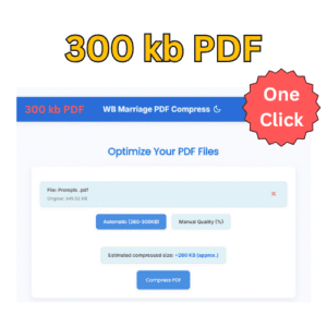 Many government websites require uploaded PDF files to be under 300 KB. The WB Marriage PDF 300 KB Tool helps reduce the file size of scanned marriage documents so they can be easily uploaded online.